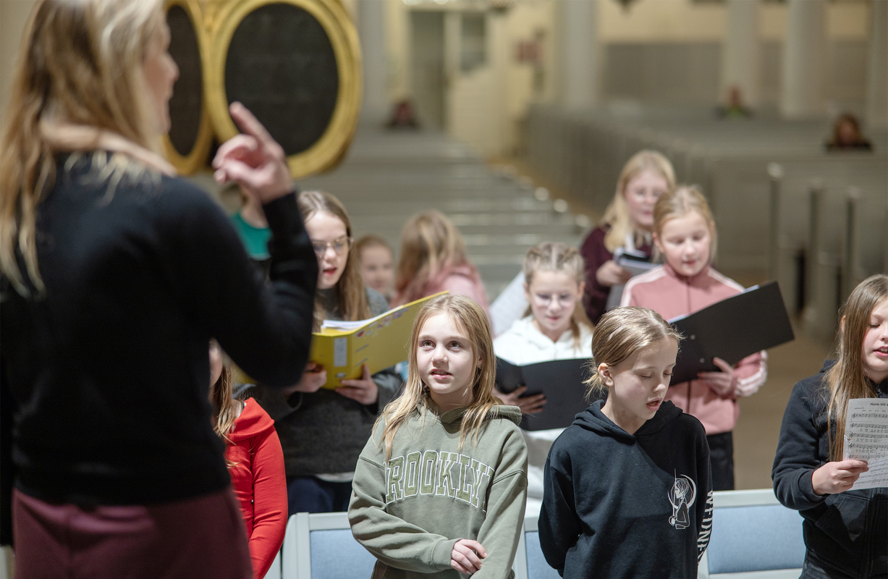 När barnens lek är slut tar kammarkören Psallites övning vid. Erica leder också den. Den kören står för den mest avancerade repertoaren och ställer de högsta kraven på sångarna.