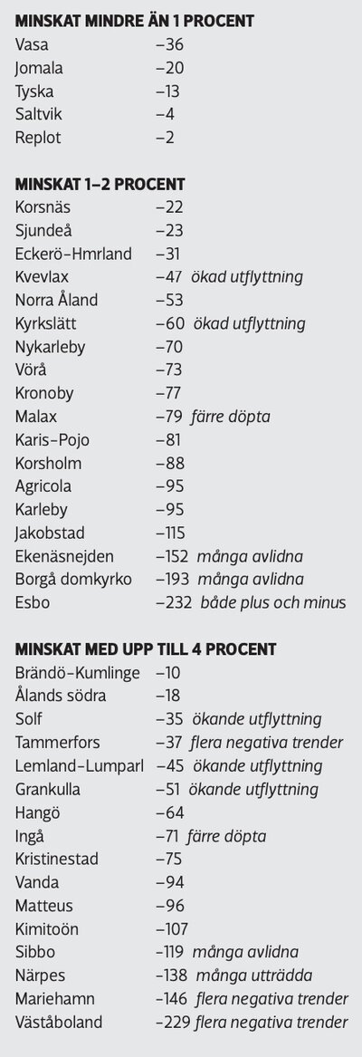 Förlorare i flyttrörelsen är små församlingar som i Solf eller Kvevlax, men också villaenklaven Grankulla eller Väståboland har på kort tid tappat många avflyttare.